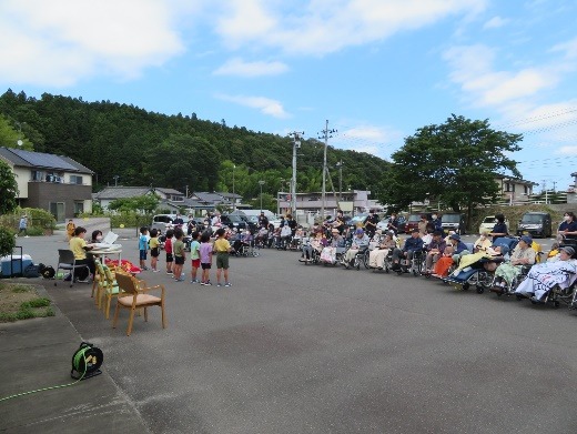 コロナ禍以降、保育所・幼稚園との交流会は、感染対策のために、園児と利用者様の距離を十分に確保して屋外で開催するようにしました。昨年は職員が企画し、施設の駐車場を会場に園児が歌とお遊戯を披露。利用者様は、子どもたちから元気をもらえたととても喜んでいらっしゃいました。「それまで行っていた活動をコロナだからできないと諦めるのではなく、どうやったらできるのかを考えます」と畠山さん。